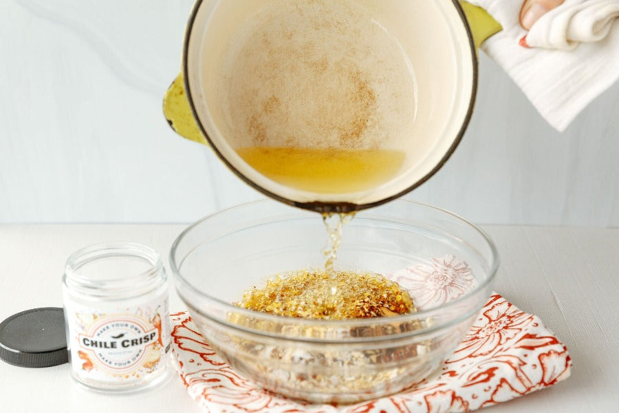 Our Chile Crisp Kit is a fun and easy way to make a jar of deliciousness. Heat oil, pour over the spices, chiles, garlic and sesame seeds. Let cool then move it back to the jar. Eat it all or store the jar in the fridge. Hop over to our recipe blog for step-by-step, make-your-own instructions.