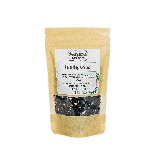 Christmastime in a Cup! That's our Candy Cane Black Tea. Candy Cane Black Tea is part of our Holiday Tea lineup. This tea is a good reason to celebrate the season. Treat yourself to this delicious tea or gift it to someone you love. Black tea plus big hunks of candy cane that you can see and smell. Minty, creamy and delicious! This is a milk & sugar no brainer, but we also love, love, love it iced.