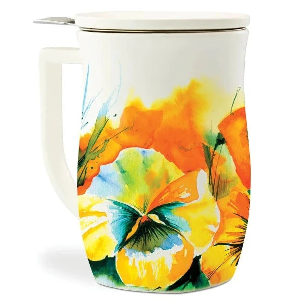 The Tea Forte Fiore cups are pieces of art with every sip. Complete with a stainless-steel loose tea infuser, the lid keeps your tea warm while steeping and acts as a coaster for your infuser basket when finished. This 14-ounce ceramic cup and lid are microwave and dishwasher-safe.