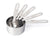 These measuring cups are made from heavy gauge 18/8 stainless steel and have long, rounded handles. This 5 pc. Set includes: 1, 1/2, 1/3, 1/4, and 1/8 cups. Dishwasher safe.