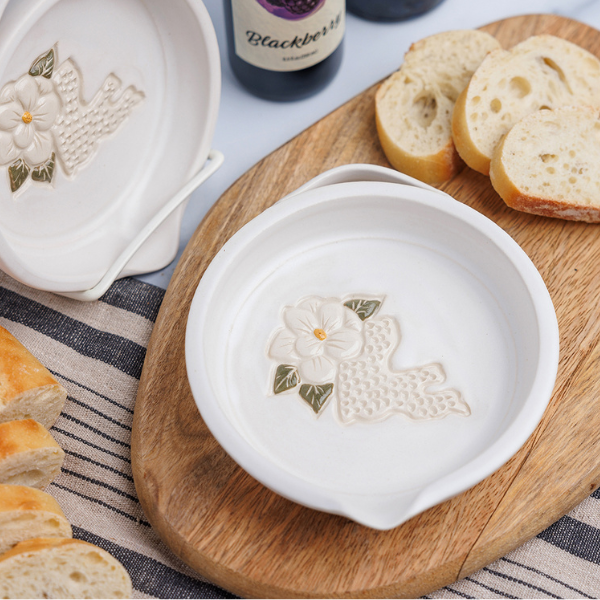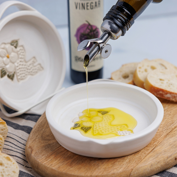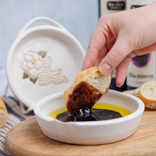 These garlic mincer plates are a testament to Amanda's approach to beauty and function. These beautiful plates feature a scraping surface and generous bowl for oil and balsamic.