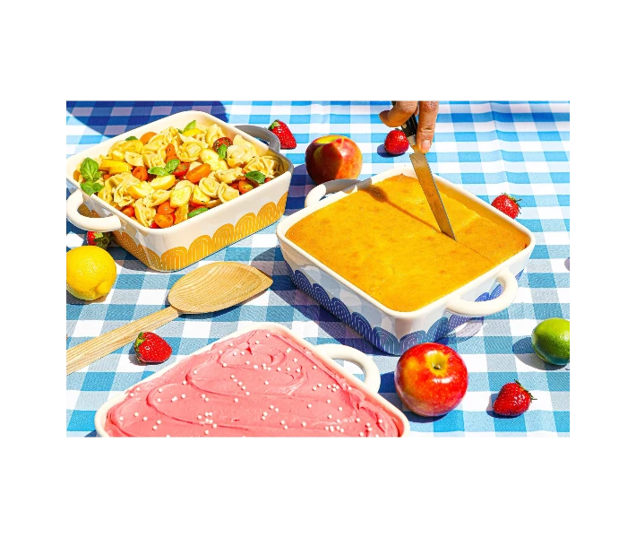 Why should any part of your kitchen be boring? The Great Jones Little Hottie 8-inch square ceramic baker is ideal for smaller servings and easy portability, so you’re always potluck-ready. Ceramic stoneware is scratch- and stain-resistant and extremely easy to clean. While the base is cute and compact, our signature handles are oversized, making it easy to grab with an oven mitt. (Not only is Little Hottie oven-safe — it’s also dishwasher-safe, freezer-safe, and microwave-safe.) Plus, Little Hottie nests perfectly inside our Hot Dish for easy storage.