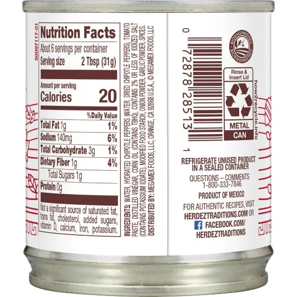 Herdez Chipotle Peppers in Adobo Sauce offers endless possibilities for your favorite Mexican recipes. Turn up the flavor on everything from fish tacos, enchiladas, queso and more. Chipotles in Adobo are one of our favorite pantry staples. They're easy to grab to add bold smoky flavor from a blend of chipotle peppers, cilantro, and garlic.