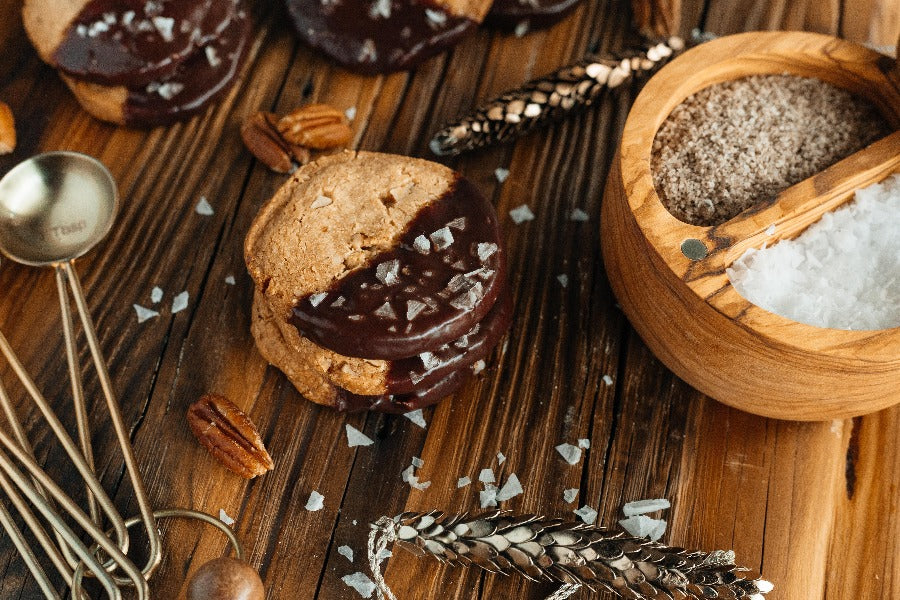 This gorgeous olive wood salt box has a smooth swivel top with a magnetic closure. Dual 4 oz. compartments are convenient for holding your favorite salts. Overall size 5″ dia. x 2-1/2″ H. Hand wash with mild soap and dry thoroughly.