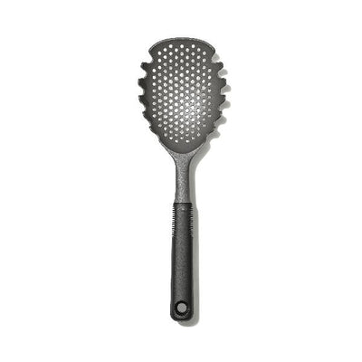 Making pasta but don’t feel like digging out the colander? With the OXO Good Grips Pasta Scoop Strainer you can leave the colander in the cupboard to strain your long, short or delicate pasta. Preserve your pasta water and use one hand to scoop and strain the pasta you need. The extra-large scoop capacity means the Pasta Scoop Strainer can handle pasta, vegetables and poached eggs with ease.
