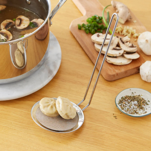 Made of highly polished 18-8 stainless steel for long-lasting use. Very fine mesh, ideal for straining small-large sized foods - we love it for canning. Perfect for skimming the foam off cooked fruit and vegetables in preparation for making jams and jellies. The perfecting accompaniment to the Canning Essentials Set.